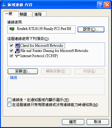 XP無論是home版或Pro版,大部分設定到這裡就已經可以連線了,若還不能連請接著往下設定...