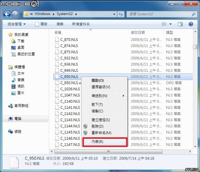修改C:\Windows底下,"\System32"及"\SysWOW64"這兩個資料夾中的"C_950.NLS"檔案
