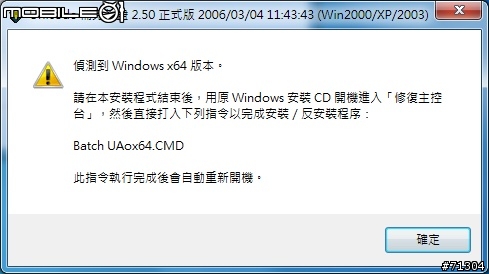 開完機後,到C:\Windows下,會有一個UAOx64.exe的檔案,連擊兩下執行