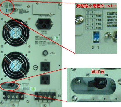 5. 調整輸出電壓的 switch 組合,達到要求的輸出電壓,調整後再依反向的步驟啟動 UPS 即可。