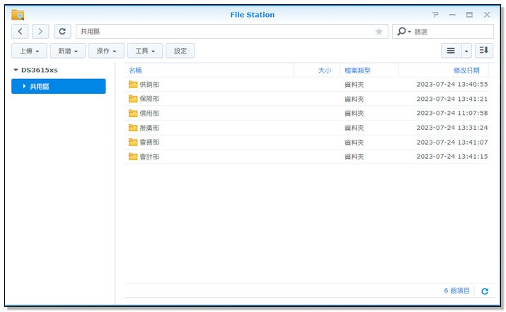 若登入的員工帳號是隸屬【信用部群組】則不會看到其他部門的資料夾。