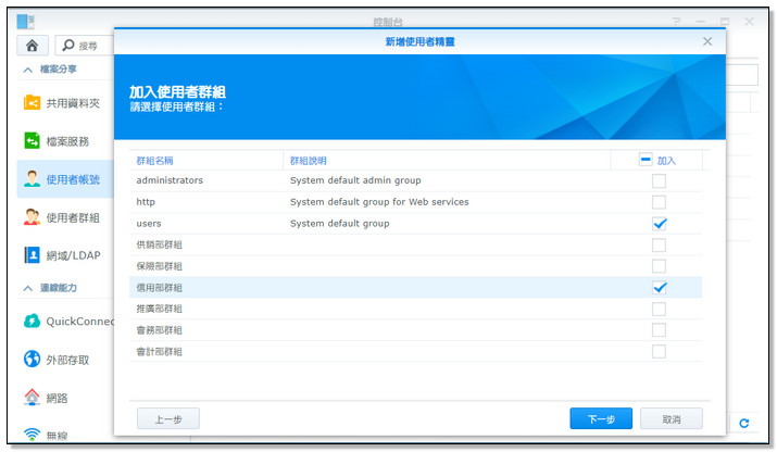 2.請勾選該員工隸屬的使用者群組->【下一步】