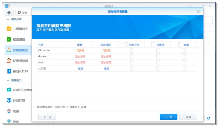 步驟四、設定【 共用區】進階共用權限【可讀寫】。